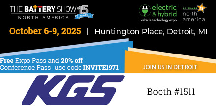 Stop by KGS America’s booth #1511 at the Battery Show ...
